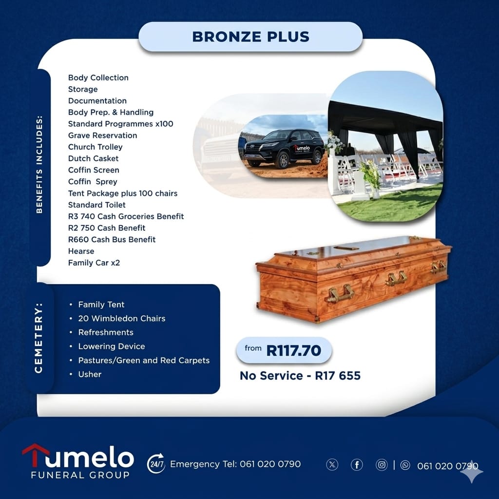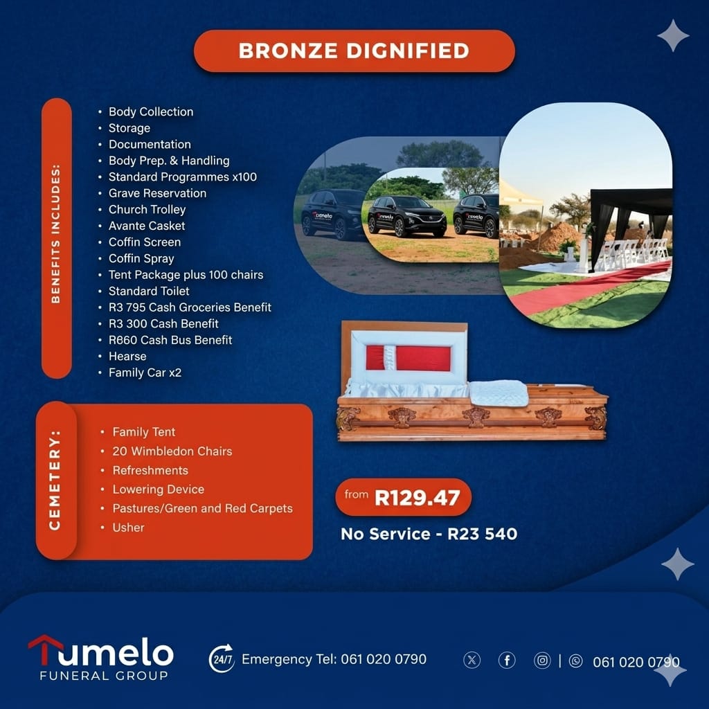 Through hard work and dedication, Tumelo has become one of Africa's most trusted funeral services providers.